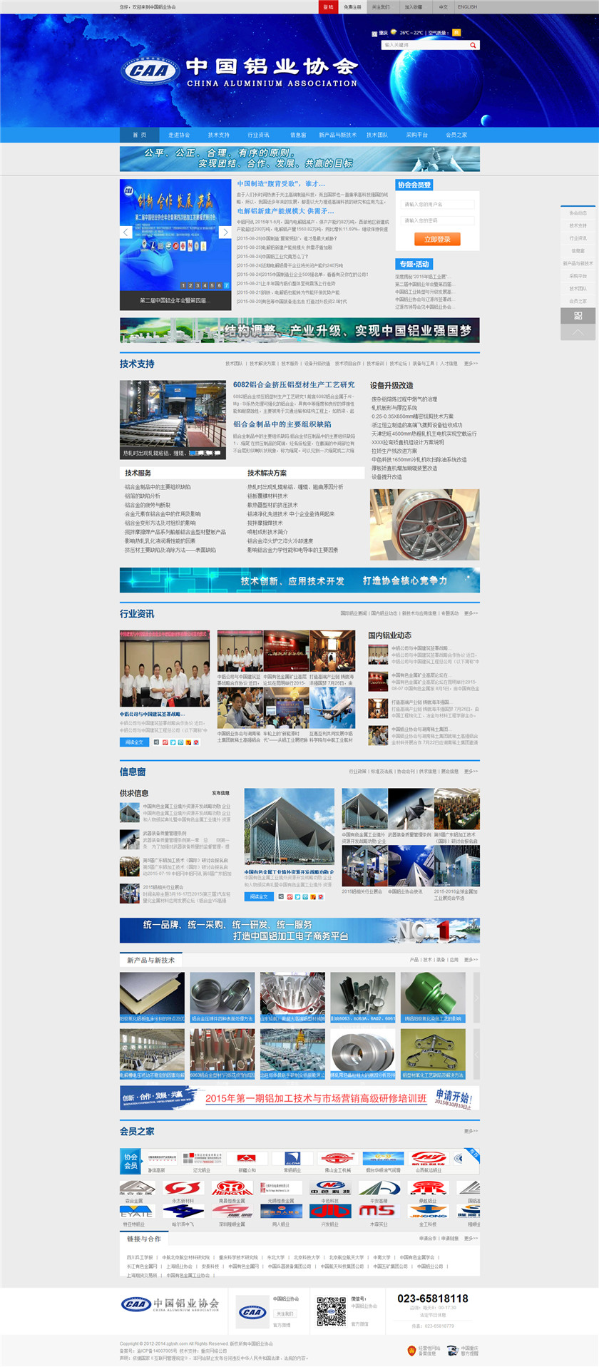 Project Description 中国铝业协会是由中国国内主要从事铝合金铸造、板、带、箔、管、棒、型材、锻件等企业组成的行业协会组织,协会由国内具有一定规模和影响力的企业发起,已有三百多家会员企业,目前还有很多企业踊跃希望加入,协会现有会员企业年销售额1000多亿元人民币,协会会员企业分布在国内华东、华南、西南、环渤海、东北、胶东半岛等中国经济活跃地区;产品涵盖航空航天、兵器装... Official website address 闵行http://www.caa2014.com I want to share